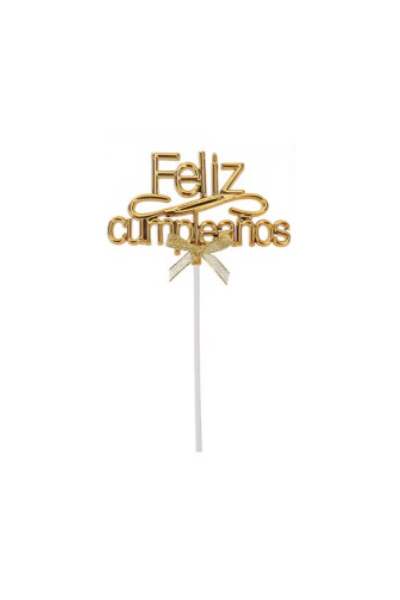 ADORNO DE TORTA *FELIZ CUMPLEAÑOS* DORADO