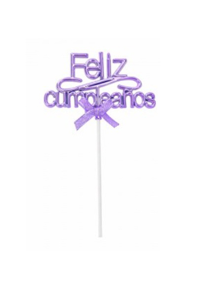 ADORNO DE TORTA “FELIZ CUMPLEAÑOS” LILA