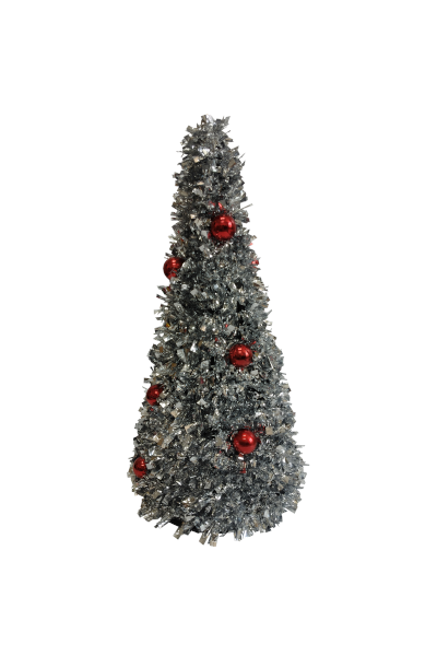 ARBOLITO *FANCY* PLATADO CON ESFERAS ROJAS – 48cm.