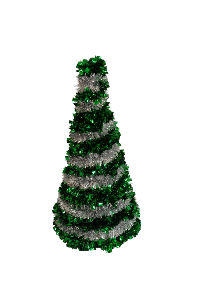 / ARBOLITO BICOLOR TINSEL VERDE CON PLATEADO – 25 cm.