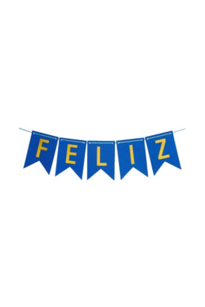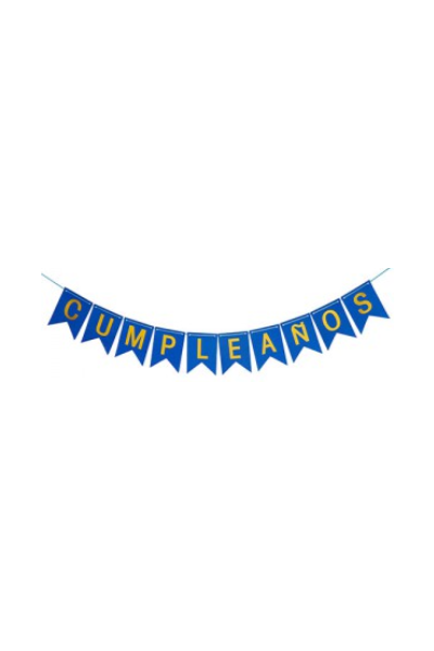 BANDERIN *FELIZ CUMPLEAÑOS* GLITTER AZUL, LETRAS STAMPING DORADO