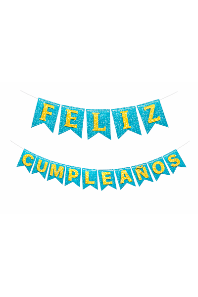 BANDERIN FELIZ CUMPLEAÑOS GLITTER CELESTE