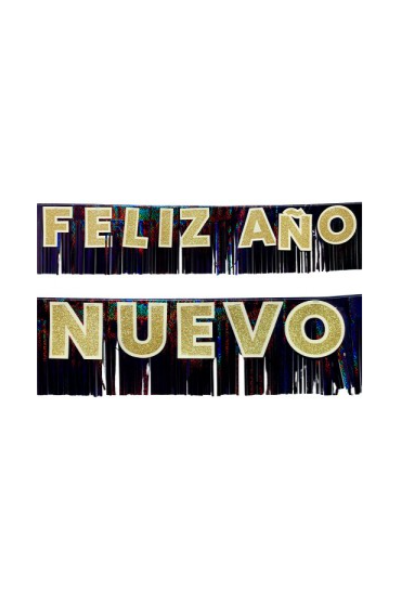 BANNER CON FLECOS FELIZ AÑO NUEVO 182cm LASER IRIDISCENTE + GLITTER