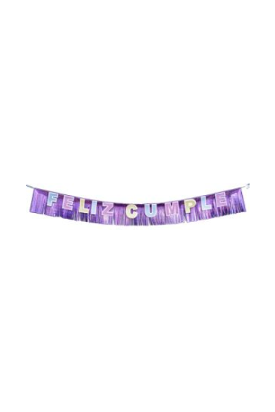 / BANNER CON FLECOS ROSA HOLOGRAFICO *FELIZ CUMPLE* x 180cm