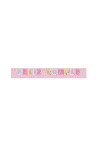 BANNER CON FLECOS ROSA HOLOGRAFICO *FELIZ CUMPLE* x 180cm