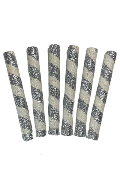 BENGALA PIRULIN PLATEADO Y BLANCO x6