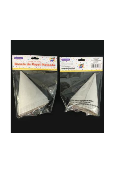 BONETE DE PAPEL PLATEADO GLITTER – Bolsa x 6 unidades