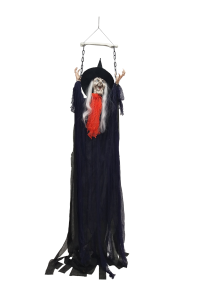 BRUJA FATAL (PARA COLGAR) 250x45x36cm – 3 pilas AA (no incluidas) EFECTO: Luz, sonido y movimiento