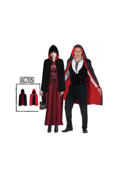 CAPA DISFRAZ REVERSIBLE NEGRO/ROJO CON CAPUCHA 80cm