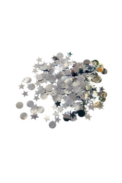 CONFETTI CIRCULOS Y ESTRELLAS PLATEADOS