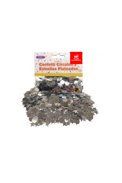 / CONFETTI CIRCULOS Y ESTRELLAS PLATEADOS