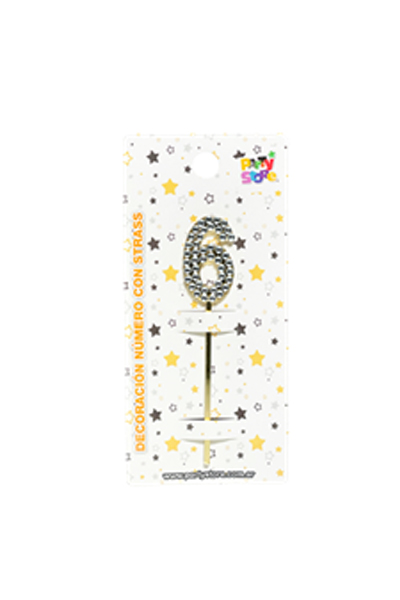 DECORACION ACRILICA NUMERO CON STRASS N.6