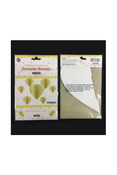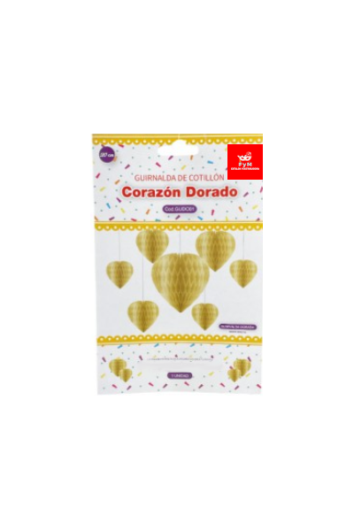 / DECORACION CORAZÓN DORADO 20 Cm