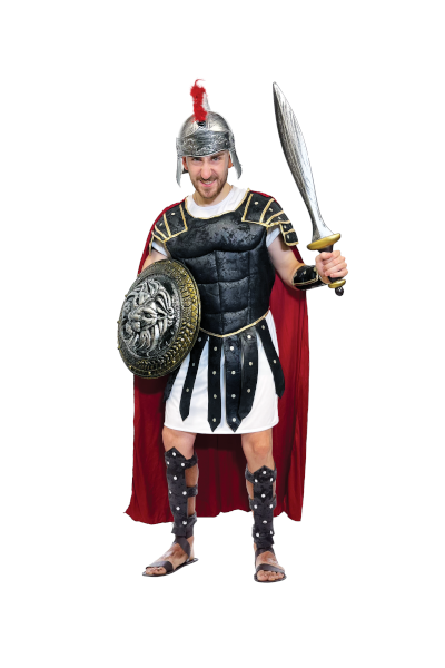 DISFRAZ GLADIADOR – TALLE *L* INCLUYE: CAPA + TÚNICA + MUÑEQUERAS