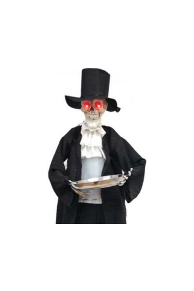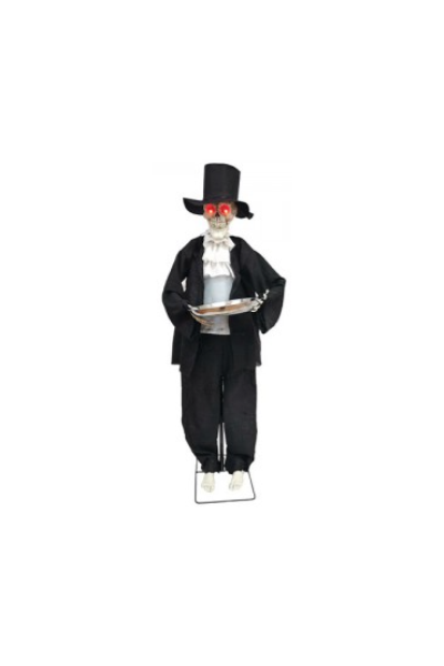 ESQUELETO MAYORDOMO C/ BANDEJA Luz, y sonido 112x32x26,5cm Pilas incluidas