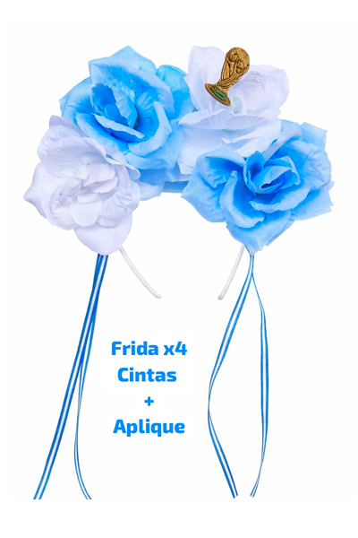 FRIDA X 4 celestes y blancas CINTAS + APLIQUE