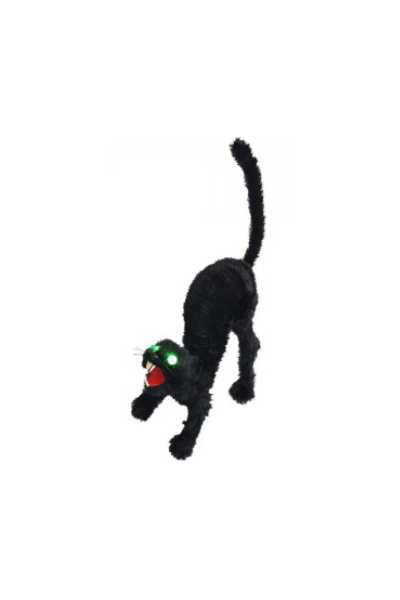 GATO AGAZAPADO *BESTIA* 32x32x19cm Luz verde. Pilas incluidas