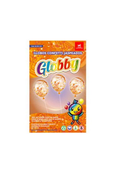 GLOBBY 12″ C/CONFETTI JASPEADO NARANJA x 6 u.