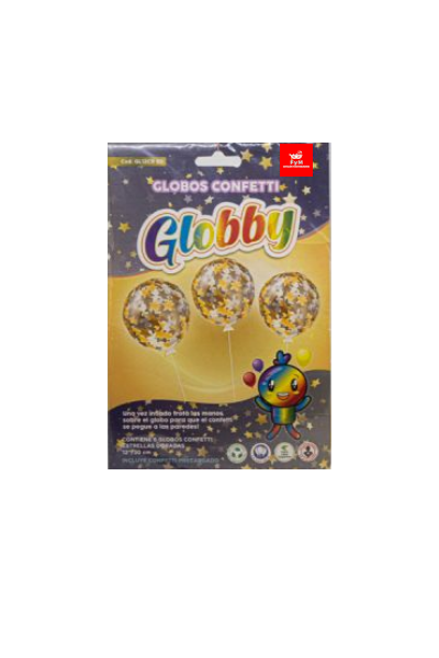 GLOBBY 12″ C/CONFETTI REDONDO ESTRELLAS DOR. – 6 u.