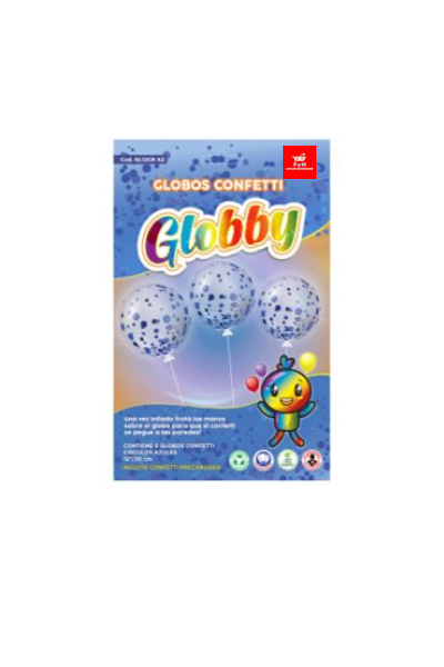 GLOBBY 12″ GLOBO C/CONFETTI REDONDO AZUL – 6 u.