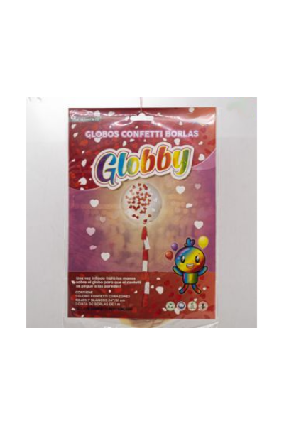 GLOBBY 24″ KIT GLOBO CORAZON+CONFETTI+BORLAS