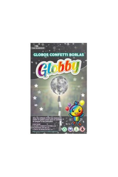 / GLOBBY 24″ KIT GLOBO+CONFETTI+BORLAS ESTRELLAS PLATA