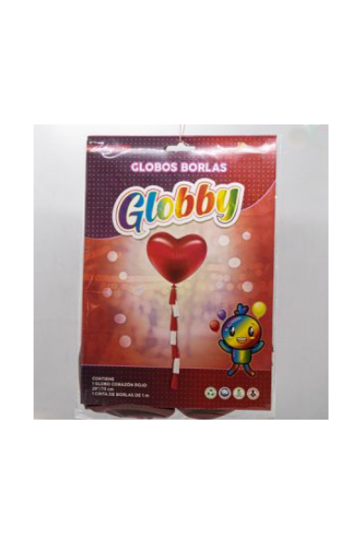 / GLOBBY 29″ KIT GLOBO + BORLAS CORAZON ROJO x 1un.