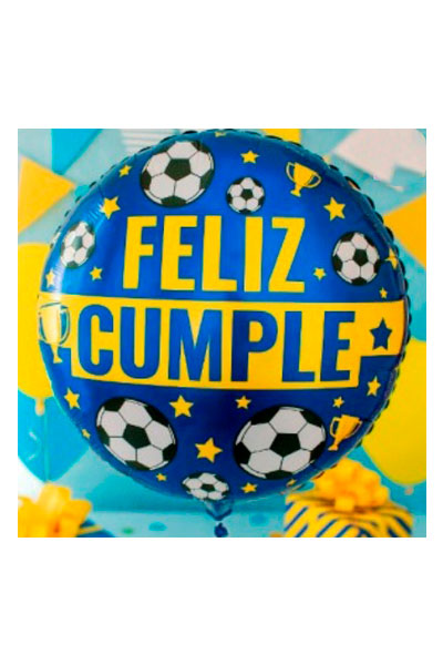 GLOBO 22″ (56cm) FELIZ CUMPLE (AZUL Y AMARILLO)