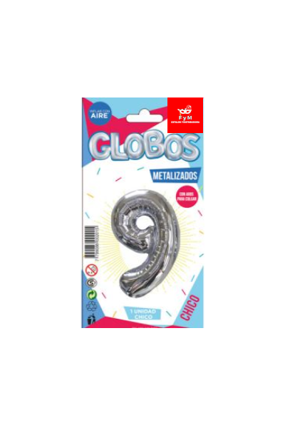 / GLOBO METALIZADO CHICO – PLATEADO N.9