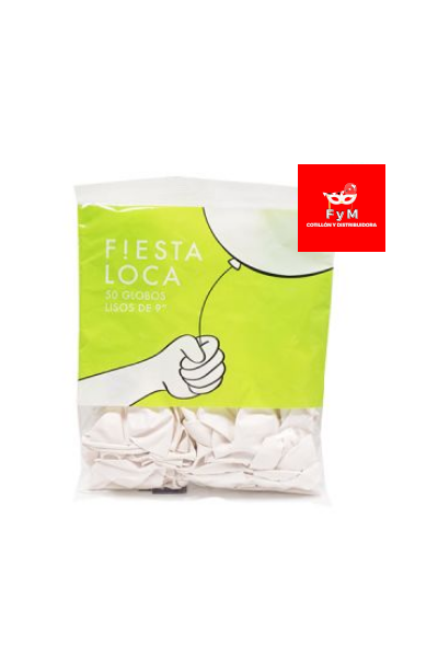 GLOBOS FIESTA LOCA 9″ LISOS x50 BLANCOS