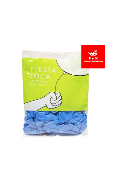 GLOBOS FIESTA LOCA 9″ LISOS x50 CELESTES