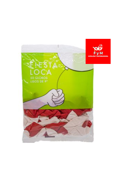 GLOBOS FIESTA LOCA 9″ LISOS x50 RIVER
