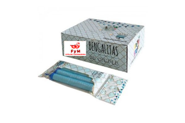 VELA BENGALA HOLOGRAFICA 12cm CELESTE LLAMA CELESTE x 4un