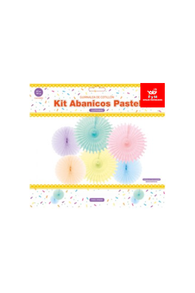KIT 6 ABANICOS MULTICOLOR PASTEL