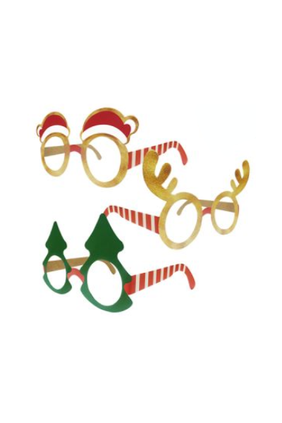 LENTES DE PAPEL NAVIDEÑOS x 6 unidades (3 modelos surtidos)