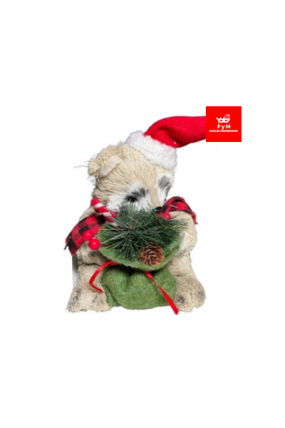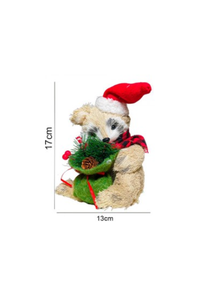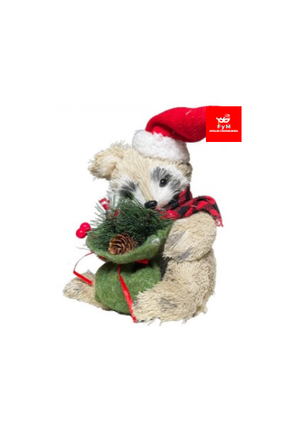 / MAPACHE SENTADO CON BOLSA GORRO Y BUFANDA LEÑADOR 24X12,5X24