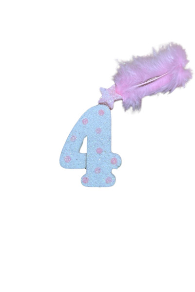 NUMERO MEDIO PLUMA TELGOPOR BLANCO LUNAR ROSA 4 (6cm x5)