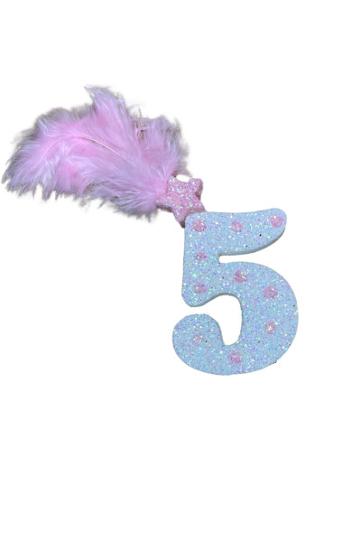 NUMERO MEDIO PLUMA TELGOPOR BLANCO LUNAR ROSA 5 (6cm x5)