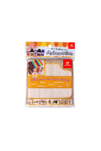 PALITOS PARA ARTESANIAS COLOR NATURAL x 50 unidades