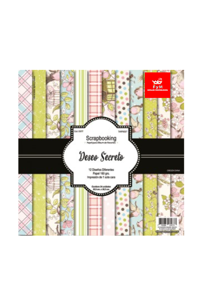PAPEL SCRAPBOOKING 160gr *DESEO SECRETO* 24hojas 30,5×30,5cm