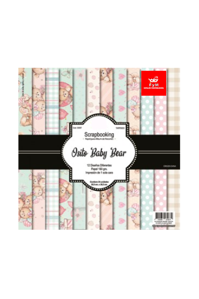 PAPEL SCRAPBOOKING 160gr *OSITO BABY BEAR* 24hojas 30,5×30,5cm