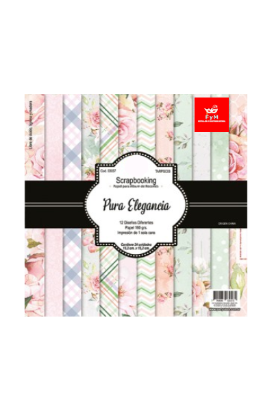 PAPEL SCRAPBOOKING 160gr *PURA ELEGANCIA* 12hojas 15,2×15,2cm