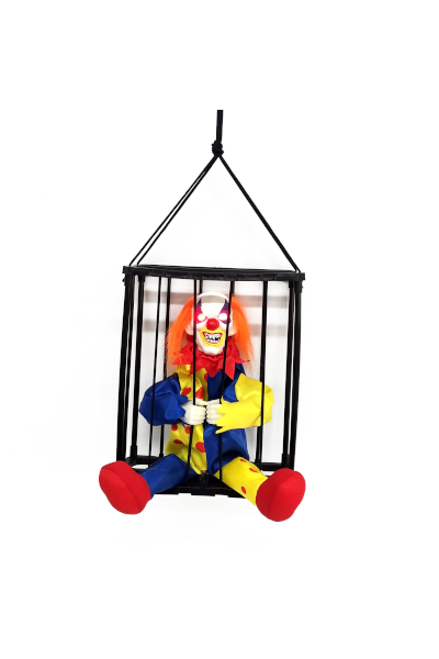 PAYASO ENCARCELADO (PARA COLGAR) : 61x23x16 cm. – 3 pilas AA (no incluídas) EFECTO: Luz, sonido y movimiento