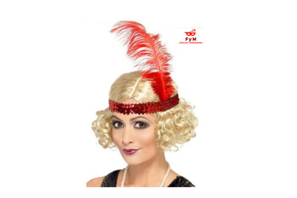 / PELUCA CHARLESTON RUBIA (incluye vincha con pluma)