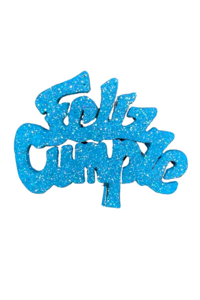 / PINCHE FELIZ CUMPLE MINI TELGOPOR CELESTE IRIDISCENTE (6cm x1)