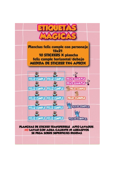 / PLANCHA FELIZ CUMPLE CON PERSONAJE x12u (7x4cm aprox)