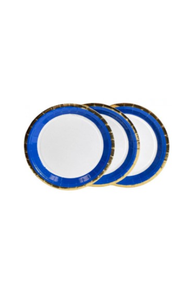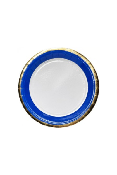PLATO DE POLIPAPEL 17cm BORDE AZUL y DORADO x 6 un