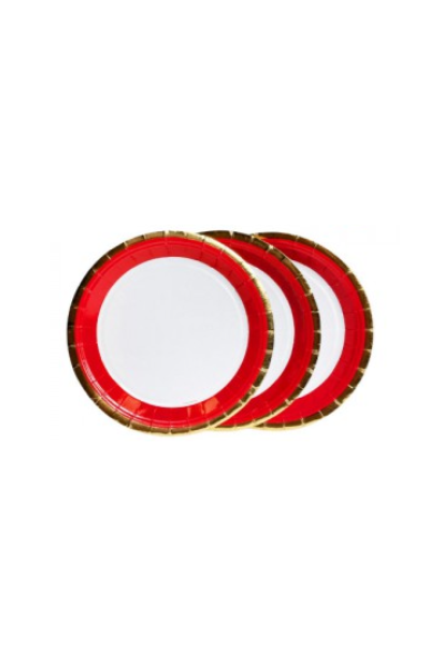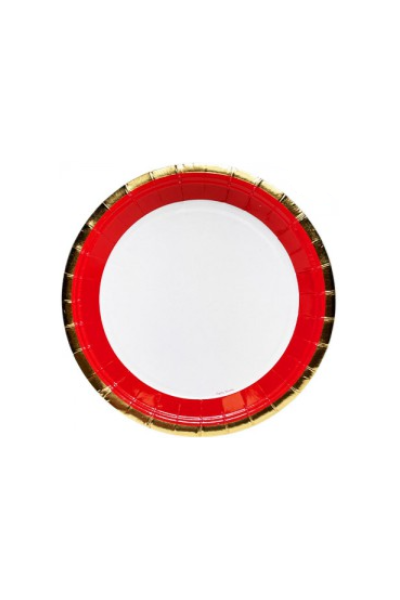 PLATO DE POLIPAPEL 17cm BORDE ROJO y DORADO x 6 un