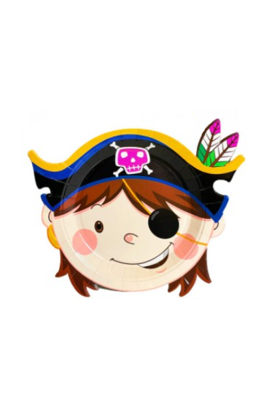 / PLATO DE POLIPAPEL 17cm CON FORMA PIRATA x 6 un