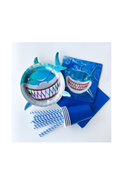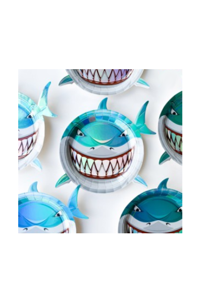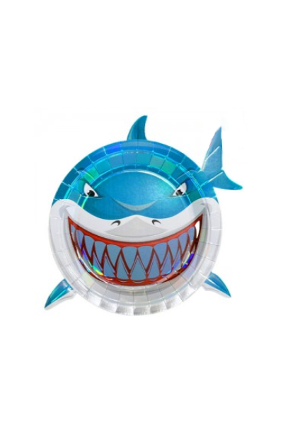 PLATO DE POLIPAPEL 17cm CON FORMA TIBURON (metalizado) x 6 un